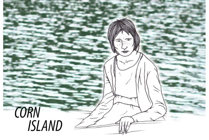 Tekening geïnspireerd op de film Corn Island door Nora Hazhaz