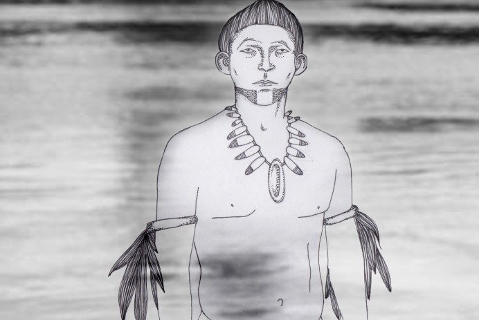 Tekening geïnspireerd op de film El abrazo de la serpiente door Nora Hazhaz